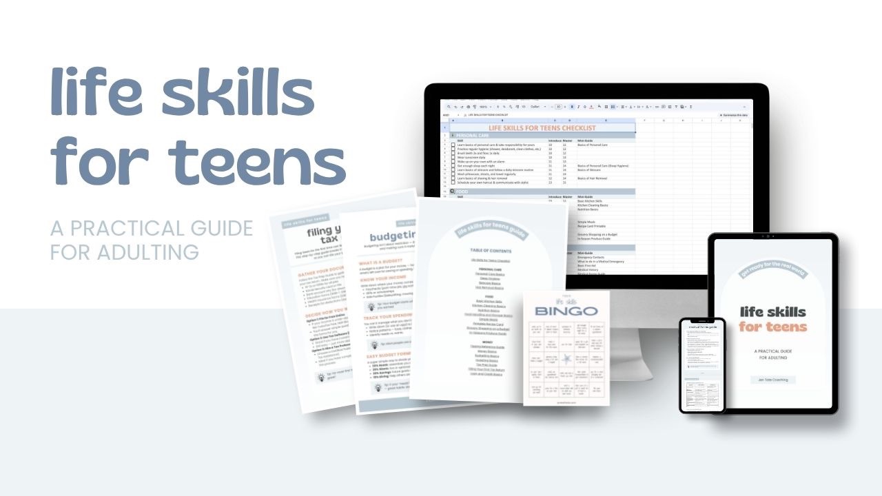 This guide will help you prepare your teen with all the essential life skills they will need to thrive in the real world. It is designed to teach one skill at a time starting as early as age 10 until your teen leaves home. Instant download includes: - a 215-page eBook for parents - 75+ individual skill guides to share with your teen - age-based life skills BINGO cards - interactive life skills trackers for teens and parents